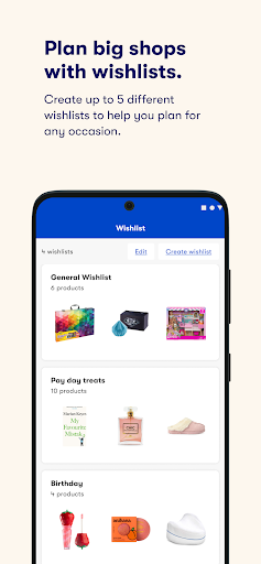 Create up to 5 wishlists to prepare for events like Christmas, Easter, or a kids’ party. Add and edit items with a tap, and when you’re ready, move them straight to your cart.