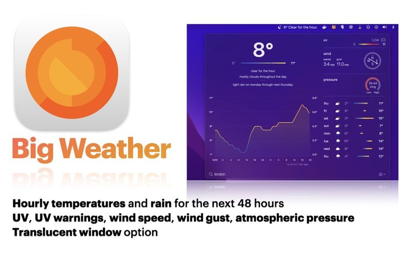 Big Weather is a comprehensive weather app designed for travelers and outdoor enthusiasts. With real-time weather updates, precise forecasts, and location-based alerts, you can plan your adventures with confidence. Enjoy features like AI-driven weather predictions, detailed radar maps, and customizable notifications that keep you informed and safe. Perfect for anyone who wants to stay ahead of the weather, whether you're planning a trip or just heading out for a day hike.