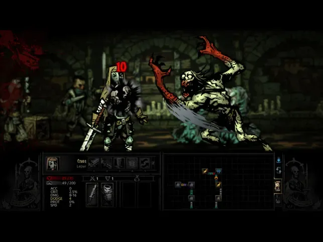 1. Assemble a team of heroes from different classes, each with unique abilities. 2. Explore dungeons by navigating procedurally generated levels filled with treacherous traps and dangerous foes. 3. Engage in tactical turn-based combat, making strategic decisions to overcome various enemies. 4. Manage the stress levels of your heroes, as their mental health impacts performance. 5. Upgrade your heroes and town facilities to gain new skills and improve your chances of survival.
