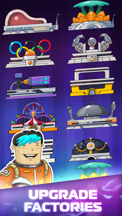 Construct factories on new planets. Each factory can produce various resources—boost production and speed up your progress!