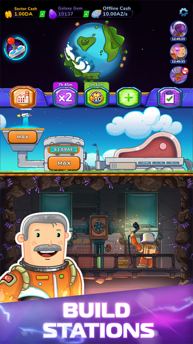Unlike other idle games, here you can develop your own strategy to manage factories, products, and workers! Strengthen your spaceship and let the workers produce hundreds of items to fill the mine! Earn gold coins, upgrade and develop your employees!
