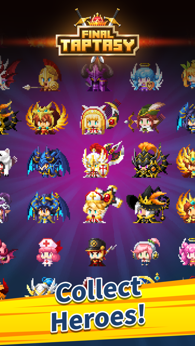 FINAL TAPTASY combines sensation tapping, retro pixel art, and endless content into a truly unforgettable tap adventure. Ready to become the hero and defeat the FINAL boss? Download FINAL TAPTASY now and experience the thrill of non-stop action!