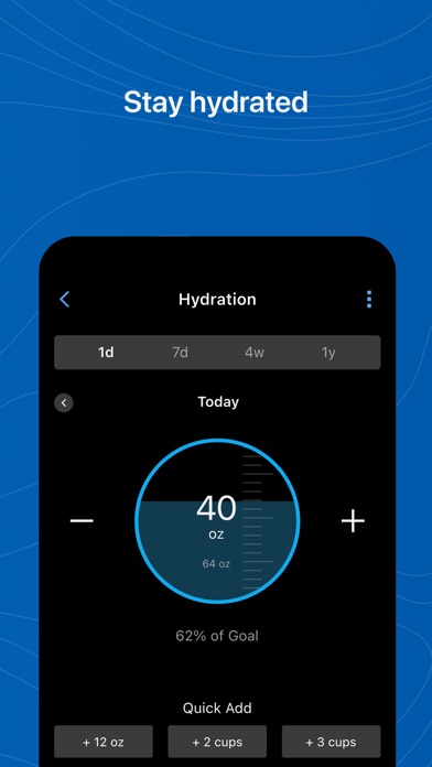 Use the app to track your hydration, menstrual cycle, and body battery, helping you maintain a balanced lifestyle.