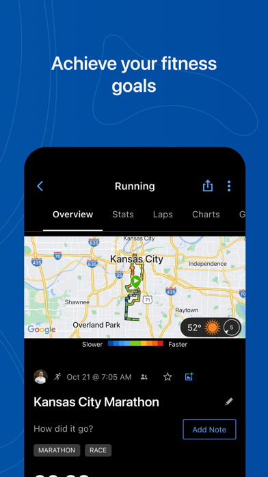 Analyze your workouts with detailed metrics like pace, distance, elevation, and calories burned, all in one place.