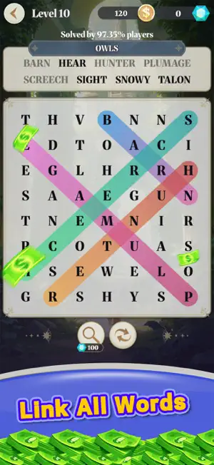 Identify and arrange letters to form words from the given grid. Use hints to guide you when you're stuck or need a nudge. Level up by solving increasingly challenging puzzles as you progress. Explore different themes and settings to expand your vocabulary. Challenge friends and see who can decode the letters the fastest.