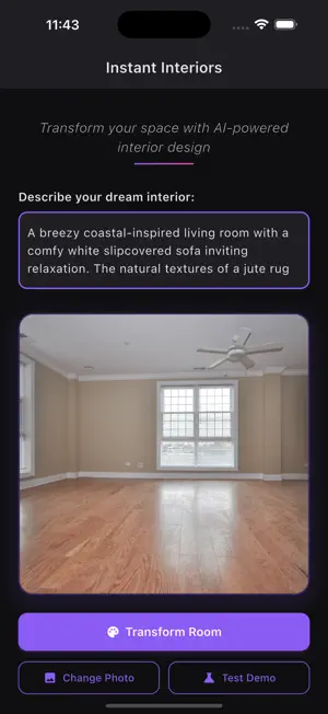 Instant Interiors - AI is an innovative lifestyle application designed to transform your living spaces with ease and creativity. This AI-driven app offers smart recommendations to elevate your home design, providing users with an intuitive and efficient tool for interior decoration. Whether you're planning a complete makeover or simple rearrangements, Instant Interiors offers instant solutions tailored to your preferences.