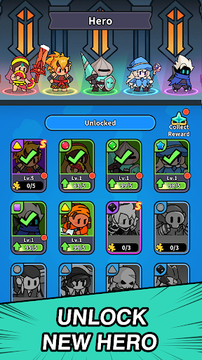 Gacha mechanics allow you to unlock and level up heroes with unique abilities. Equip your heroes with powerful items and watch their attributes grow stronger.