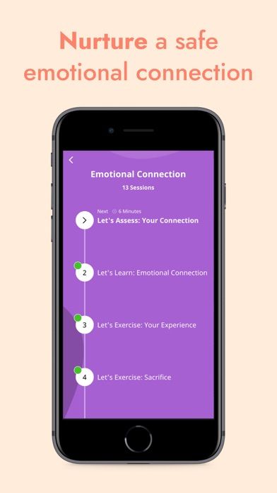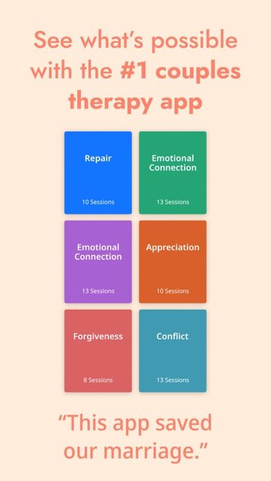 Lasting offers a series of guided counseling sessions designed to address key areas of relationship health, such as communication, conflict resolution, emotional intimacy, and trust. Each session is led by a relationship expert and provides practical advice, exercises, and reflections that help you and your partner understand each other better and work through challenges together.