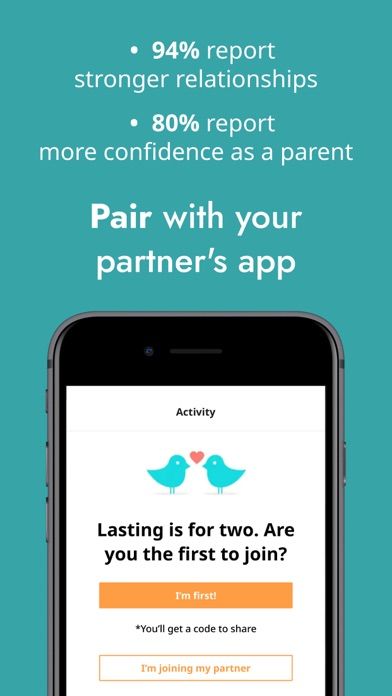 Download the Lasting app from the Google Play Store or App Store. Open the app and create an account by entering your basic information. The app will guide you through a brief assessment to better understand your relationship and tailor the sessions to your needs.