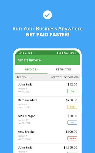 Smart Invoice is an easy-to-use invoicing app designed for freelancers and small business owners. It allows users to create, estimate, bill, and email invoices directly from their phone or tablet. The app offers a variety of customizable options, including custom invoice numbers, payment dates, and the ability to add discounts, taxes, and company logos. You can draft invoices, manage invoice history, and save PDF copies for future accounting. The app supports multiple currencies and date formats, and it's available in six languages. Additionally, Smart Invoice lets you create estimates, convert them to invoices, and share them with clients via messaging apps.