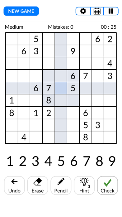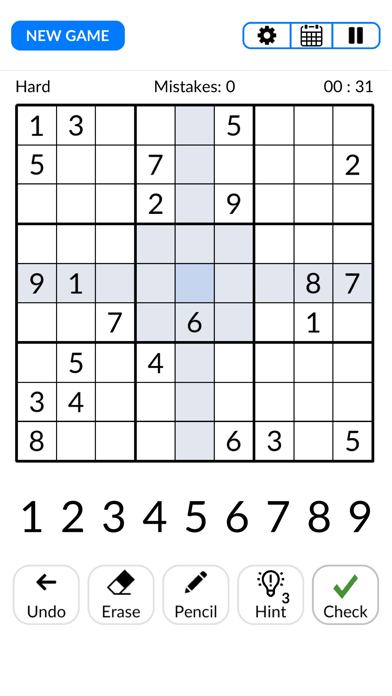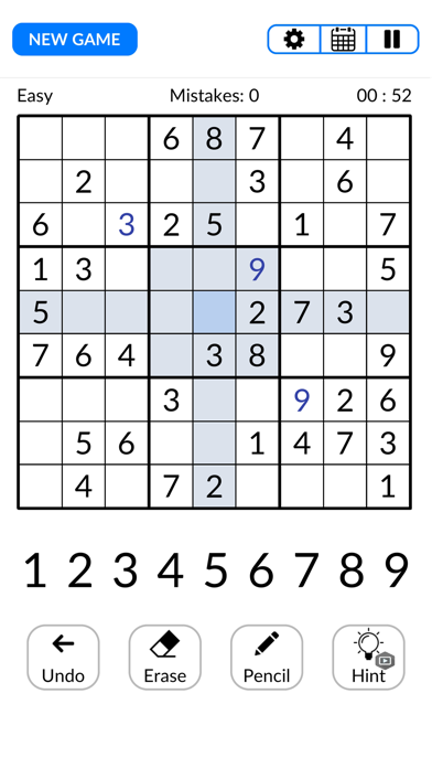 Select the difficulty level that matches your expertise. Analyze the empty spaces on the Sudoku grid and fill them with numbers from 1 to 9. Ensure that each row, column, and 3x3 section contains unique numbers. Use logical deduction to eliminate possible number placements. Progress through increasingly challenging puzzles to improve your skills. Utilize hints if you find yourself stuck to continue your puzzle-solving journey.