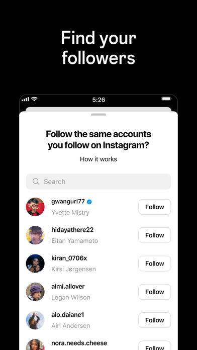 Your Instagram username and verification badge are exclusively reserved for you. In just a few taps, you can automatically follow the same accounts you already follow on Instagram, and also discover new exciting accounts to follow.